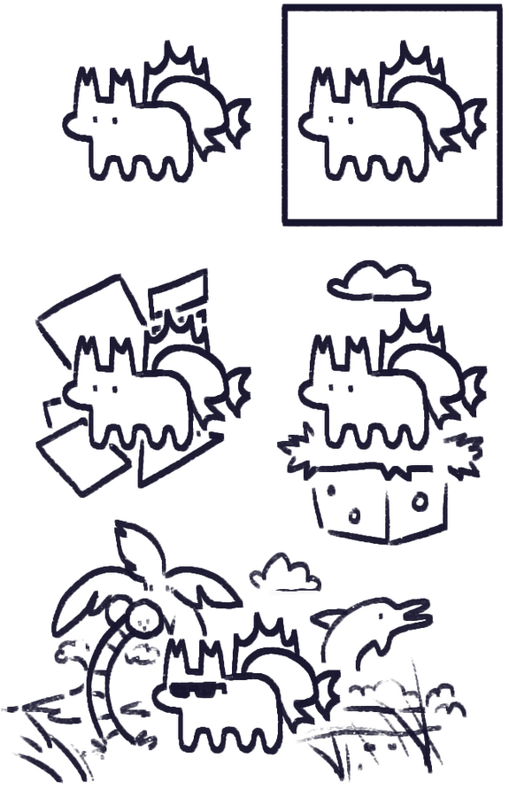 Clean dragon and creature drawings